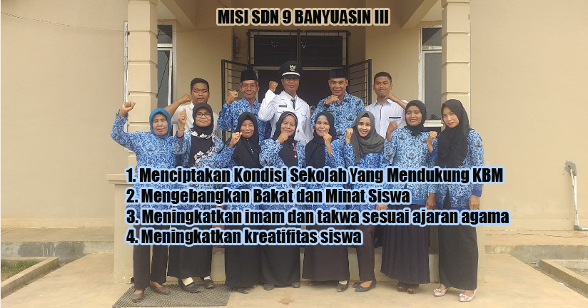 Assalamualaikum Warahmatullahi WabarakaatuhSelamat datang di website SDN 9 BANYUASIN III, tanggap dengan perkembangan teknologi tersebut. Dengan dukungan SDM yang di miliki sekolah ini siap untuk berkompetisi dengan sekolah lain dalam pelayanan informasi publik. Teknologi Informasi Web khususnya, menjadi sarana bagi SDN 9 BANYUASIN III untuk memberi pelayanan informasi secara cepat, jelas, dan akuntable. Dari layanan ini pula, sekolah siap menerima saran dari semua pihak yang akhirnya dapat menjawab Kebutuhan masyarakat.